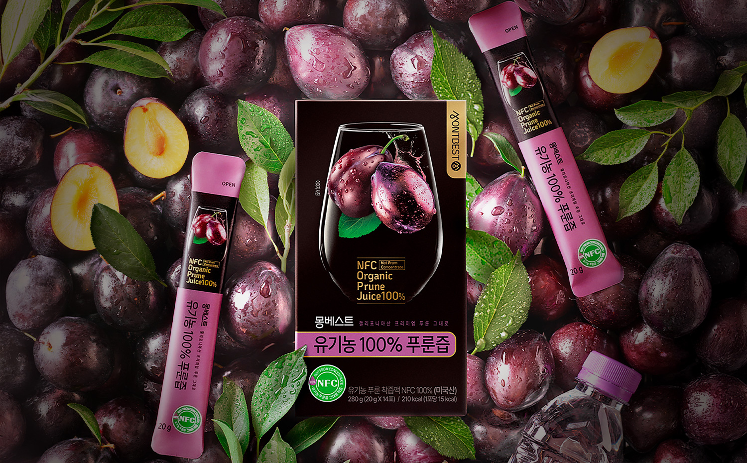 Start your healthy daily routine with Montbest Organic 100% Prune Juice-wellness delivered by nature, one pouch a day.